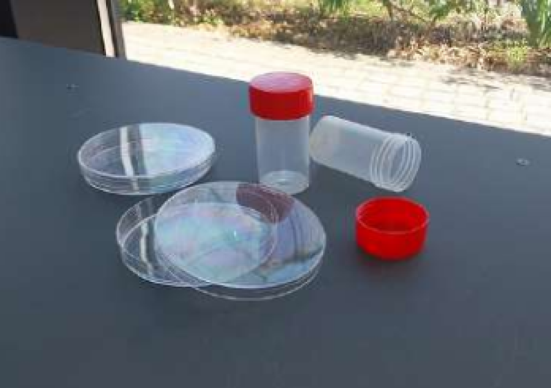 40 petits tubes transparents, 15 boîtes circulaires plates transparentes et 1 gros tube.