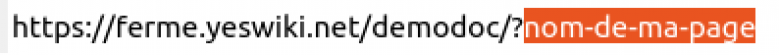 Une toute autre manière de créer une nouvelle page est d'aller, dans la barre d'adresse de votre navigateur, modifier l'URL. La dernière partie de l'adresse (après « /? ») correspond au nom de la page.