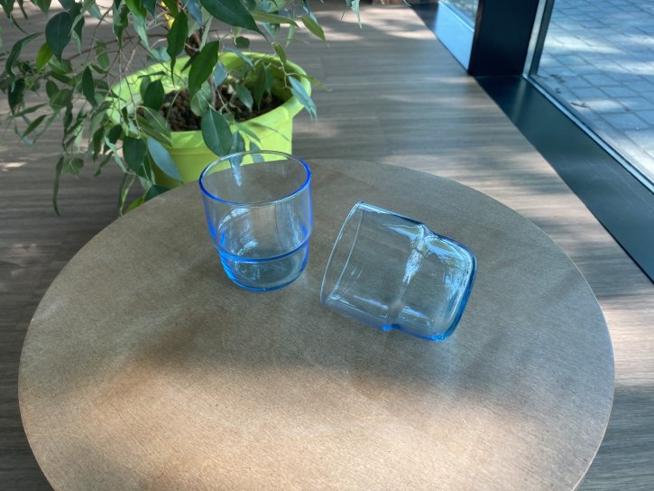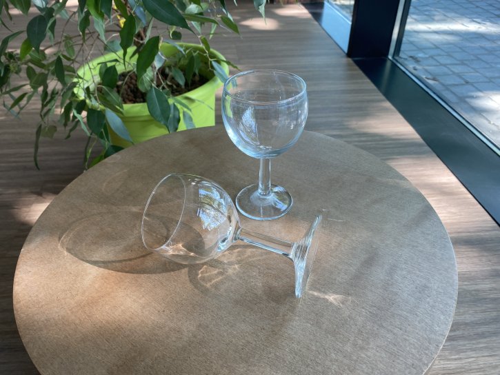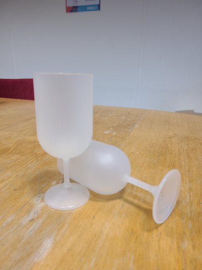 30 verres à pied en verre, 85 verres à pied en plastique.